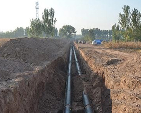 1.溝槽開挖 溝槽底寬應按下式計:B=D1+2(b1+b2) 式中:B—管道溝槽底部的開挖寬度(mm) D1—管道結構的外緣寬度(mm) b1—管道一側的工作面寬度(mm) b2—管道一側的支撐寬度(mm) 2.溝槽支撐 根據溝槽土質、地下水、開槽斷面、荷載條件等因素進行設計,要求牢固可靠,防止塌方、支撐不得妨礙下管和穩管。 3. T型接口管道在垂直或水平方向轉彎處應設支墩。應根據管徑、轉角、工作壓力等因素經計算確定支墩尺寸。 4.輸送生活飲用水時,管道不應穿過毒物污染區,如穿過時應采取防護措施。 5.凡承插連接的球墨鑄鐵管線,經計算設支墩,參見國家建筑標 準設計圖集03SS505《柔性接口給水管道支墩》。 6.球墨鑄鐵管的外防腐蝕涂層應根據敷管地的土質情況來選擇鍍鋅和環氧瀝青涂層或更高要求的涂層。 7. 管道安裝完、試壓合格后,宜用低氯離子水沖洗和0.03%高錳酸鉀水溶液消毒。